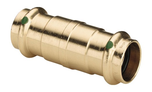 Der Rotguss Pressfitting Schiebemuffe 28 mm innen/innen von Viega, zwei Muffen mit SC-Contur ist für die Verbindung von Kupferrohren. Hat einen grünen Punkt auf dem Pressanschluss als Kennzeichnung. Die EPDM Dichtelemente, in der Farbe: schwarz (Ethylen-Propyläen-Dien-Kautschuk), eignen sich für Temperaturen bis 110°C.